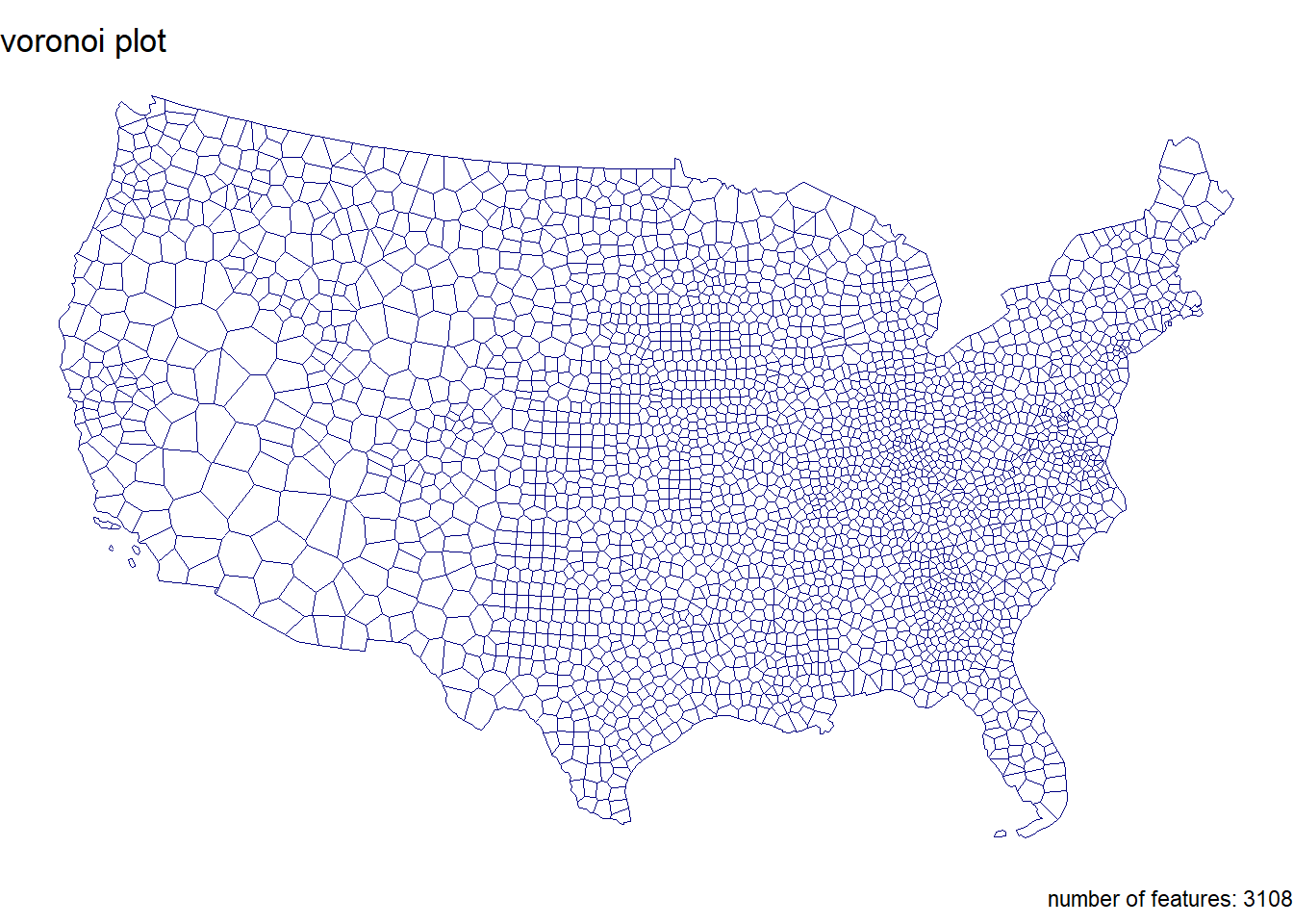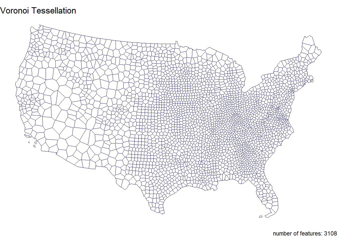 If you plot the above tessellations you’ll see the triangulated surfaces produce regions far beyond the boundaries of CONUS.