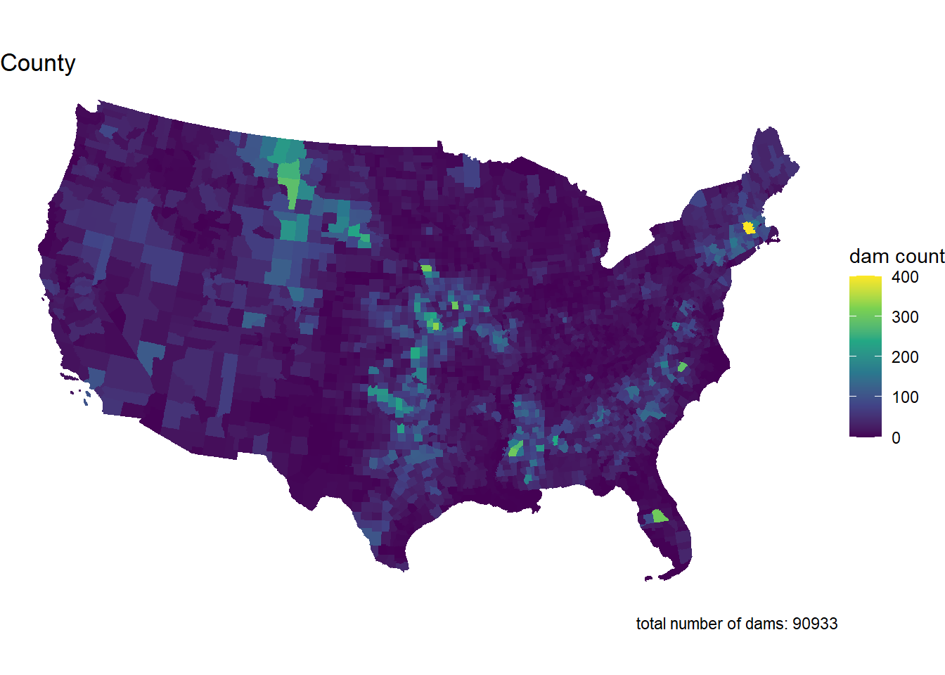 dam_plot(dams_conus, "County")
