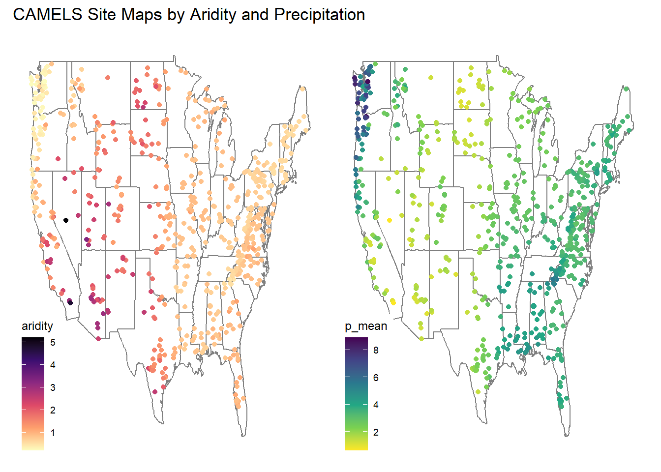 camels <- power_full_join(camels ,by = 'gauge_id')Alternatively, we could have read straight form the urls. Strongly consider the implications of this approach as the longevity and persistence of the data is not guaranteed.