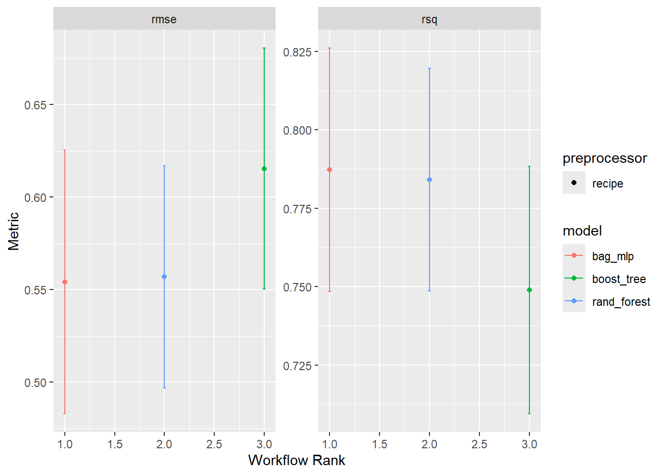 ## I think that random forest is best because it has a higher rsq and lower rmse than xgboost while having a smaller range of metrics than the neural net. Tune the best model