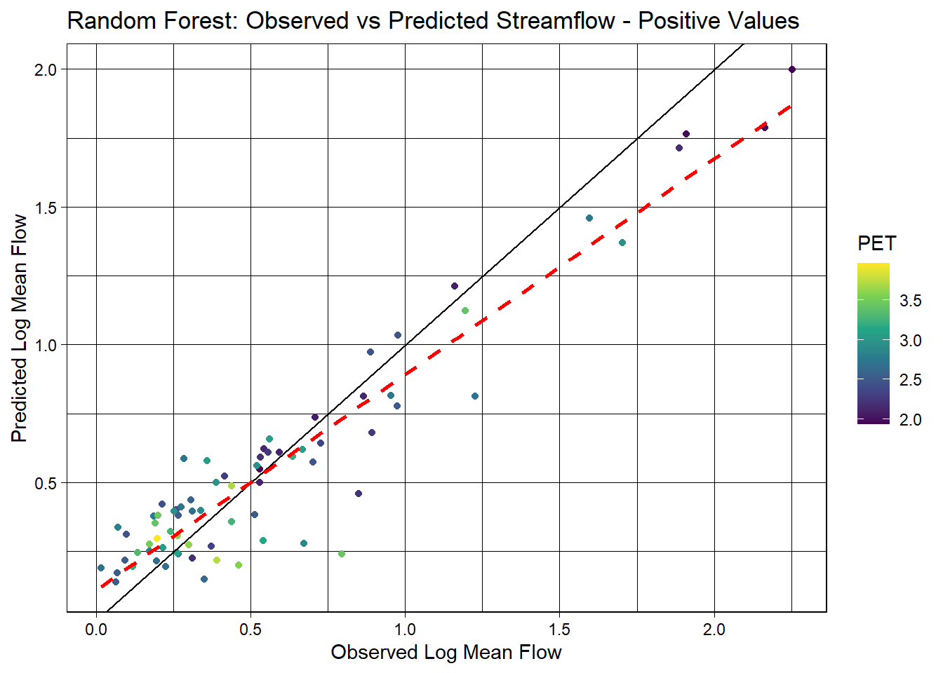 labs(title = "Random Forest: Observed vs Predicted Streamflow - Positive Values",